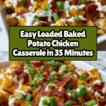 This 35-Minute Loaded Baked Potato Chicken Casserole is a comforting, easy weeknight dinner that combines tender chicken, hearty potatoes, and all the classic loaded potato toppings. It’s a delicious, all-in-one meal that your whole family will love.