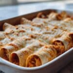 - Arrange in Baking Dish: Place the rolled enchiladas seam-side down in a baking dish, lining them up so they fit snugly side by side.
