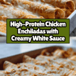 These 38g Protein Chicken Enchiladas are a healthy twist on a classic Mexican favorite. Made with shredded chicken seasoned with cumin and garlic powder, wrapped in whole wheat tortillas, and baked in a rich and creamy Greek yogurt-based white sauce, they provide a protein-packed, comforting meal that’s perfect for lunch or dinner. Topped with melted cheese and baked to bubbly perfection, this recipe offers a delicious balance of flavors and textures while keeping the dish nutritious and wholesome.