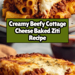 Beefy Cottage Cheese Baked Ziti is a comforting pasta dish layered with a rich meat sauce and a creamy cheese mixture. Perfectly baked until bubbly and golden, it makes an ideal meal for family dinners or gatherings.