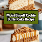 This Biscoff Cookie Butter Cake is a moist, spiced dessert infused with the rich, caramelized flavor of Biscoff cookie butter. Featuring a tender crumb enhanced with cinnamon and layered with creamy Biscoff frosting, this cake offers a perfect balance of sweetness and warmth. Decorated with crushed Biscoff cookies and optional caramel drizzle, it makes a cozy, crowd-pleasing treat ideal for celebrations or any sweet craving.