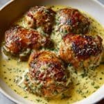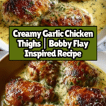 Keywords: Bobby Flay chicken thighs, creamy garlic sauce, skillet chicken, dinner recipe, seared chicken, easy chicken recipe