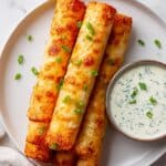 5. Serve: Remove the taquitos from the skillet, garnish with extra chopped green onion, and serve warm with ranch or blue cheese dressing for dipping.