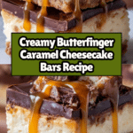 Butterfinger Caramel Cheesecake Bars combine creamy cheesecake with crunchy Butterfinger candy and luscious caramel. This delightful dessert is perfect for satisfying your sweet tooth with a rich and textured treat.