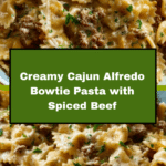 A creamy and flavorful Cajun Cream Cheese Alfredo Bowties with spiced ground beef, combining tender pasta with a rich, cheesy sauce and a hint of Cajun spice for a perfect weeknight dinner.