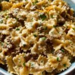 This Cajun Cream Cheese Alfredo Bowties with Spiced Ground Beef is a rich and flavorful twist on classic pasta dishes. Creamy, cheesy sauce meets the spicy kick of Cajun-seasoned beef, making it perfect for a comforting weeknight dinner. Ready in under an hour, it’s sure to become a family favorite.