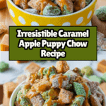 Caramel Apple Puppy Chow is a fun and festive snack mix combining crunchy Apple Cinnamon Chex cereal, sweet vanilla cake mix, and colorful green candy melts, all tossed with cinnamon and granola for a delightful treat. Perfect for parties, holidays, or a flavorful snack, this no-bake recipe is easy to make and irresistibly tasty with a hint of caramel drizzle on top.