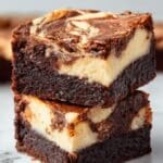 Deliciously rich and fudgy cheesecake brownies combine a classic chocolate brownie base with a creamy, tangy cheesecake swirl for a decadent dessert treat perfect for any occasion.