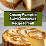 This Cheesecake with Pumpkin Swirl is a festive and creamy dessert perfect for fall and holiday gatherings. It features a rich graham cracker crust, smooth cream cheese filling, and a flavorful pumpkin swirl with warming spices. The elegant marbled design makes it visually appealing and ideal for making ahead, ensuring a show-stopping finish to any dinner.