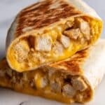 Deliciously melty Cheesy Garlic Chicken Wraps featuring tender seasoned chicken combined with a creamy cheese mixture, all wrapped in warm tortillas and pan-grilled to golden perfection. A perfect quick dinner or snack packed with savory garlic flavor and cheesy goodness.