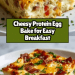 This Cheesy Protein Egg Bake is a delicious and satisfying dish perfect for breakfast, brunch, or even a quick dinner. Packed with eggs, cheese, and your choice of sausage or bacon, it’s hearty and easy to prepare ahead of time.