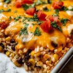 This Cheesy Salsa Chicken and Rice Bake is a comforting and flavorful one-dish meal featuring cooked rice, shredded chicken, salsa, corn, black beans, and a blend of spices all topped with melted cheddar cheese. It’s easy to prepare, perfect for a busy weeknight, and customizable with your preferred salsa heat level.