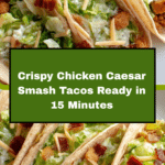 These Chicken Caesar Smash Tacos combine crispy, golden ground chicken smashed directly onto warm flour tortillas with fresh romaine lettuce, creamy Caesar dressing, parmesan cheese, and crunchy bacon bits. Ready in under 15 minutes, this recipe delivers a quick, satisfying dinner perfect for those who love the flavors of Caesar salad and the texture of smash tacos.