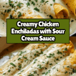 Chicken Enchiladas with Sour Cream White Sauce are a creamy, flavorful Mexican-inspired dish featuring tender shredded chicken wrapped in soft flour tortillas, smothered in a rich sour cream and green chili sauce, then baked to perfection with melted Monterey Jack cheese.