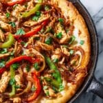 This Chicken Fajita Pizza combines the zest and flavor of classic fajitas with the comfort of a homemade pizza. Featuring a hand-kneaded dough, seasoned chicken, sautéed bell peppers and onions, topped with melted Mexican blend cheese and fresh herbs, it’s a vibrant and delicious twist perfect for any pizza night.