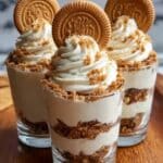 These Cookie Butter Cheesecake Cups are a delightful no-bake dessert featuring a crunchy Biscoff cookie crumb crust layered with a smooth, creamy cookie butter cheesecake mousse. Perfectly sweet and indulgent, they are easy to assemble and ideal for serving in individual portions, garnished with extra cookies for a beautiful finish.
