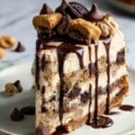 A rich and indulgent Cookie Dough Cheesecake combining a chocolate sandwich cookie crust, creamy cheesecake filling, and a luscious edible cookie dough topping, perfect for dessert lovers craving a delightful blend of textures and flavors.