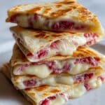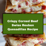 Corned Beef Swiss Reuben Quesadillas combine the classic flavors of a Reuben sandwich with the crispy, melty goodness of a quesadilla. Layers of tender corned beef, Swiss cheese, tangy sauerkraut, and a smoky, creamy sauce are folded inside flour tortillas and pan-fried until golden brown and deliciously crispy. This quick and easy recipe is perfect for a hearty lunch or dinner that brings a fun twist to a beloved deli favorite.
