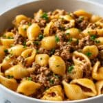 Creamy Beef and Shells is a comforting and hearty dish that combines tender ground beef with pasta shells in a rich, velvety sauce. Perfect for a weeknight dinner, this recipe is simple to prepare and packed with savory flavors.