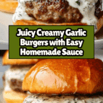 Keywords: creamy garlic burgers, juicy burgers, easy garlic sauce, stovetop burgers, brioche buns, homemade burgers, comfort food
