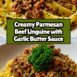 Keywords: parmesan beef linguine, creamy beef pasta, garlic butter sauce, easy Italian pasta, ground beef recipes