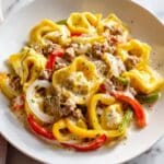 Keywords: Crock Pot, cheesesteak, tortellini, slow cooker, comfort food, beef recipe, creamy pasta, easy dinner