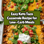 This delicious keto taco casserole is a flavorful, low-carb meal perfect for busy weeknights. Packed with seasoned ground beef, fresh vegetables, and cheesy goodness, it’s a satisfying dish that the whole family will enjoy.