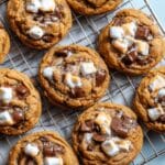 Keywords: Pumpkin S’mores Cookies, pumpkin cookies, fall desserts, autumn baking, chocolate chip cookies, marshmallow cookies, graham cracker cookies