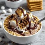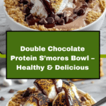 This Double Chocolate Protein S’mores Bowl is a creamy, chocolate-packed Greek yogurt treat topped with toasted mini marshmallows, crushed low-fat graham crackers, and dark chocolate chips. It combines nostalgic s’mores flavors with a health-conscious boost of protein, making it a perfect quick snack or light dessert that’s both satisfying and easy to prepare.