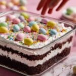 - Decorate the Top: Top the casserole with reserved cookie crumbs, whole Oreo cookies, extra pastel candy chocolates, and rainbow sprinkles for a festive Easter centerpiece.