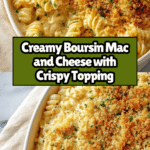This Easy Boursin Mac and Cheese recipe combines creamy Boursin and white cheddar cheeses for a rich and comforting pasta dish. With a velvety cheese sauce and a crunchy toasted breadcrumb topping, it’s a quick and delicious twist on classic mac and cheese that’s perfect for a weeknight meal or cozy comfort food craving.