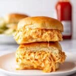 While Hawaiian rolls add a nice sweetness that complements the spicy buffalo sauce, you can use any soft dinner rolls or slider buns if preferred. Just be sure they are similar in size for easy assembly and serving.