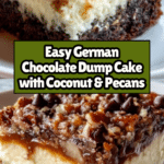 This Easy German Chocolate Dump Cake combines rich chocolate, toasted pecans, and creamy coconut in a simple, no-fuss dessert. With a smooth cream cheese topping and chocolate chips, it’s a perfect sweet treat for any occasion without complicated preparation.