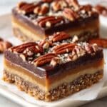 - Cool and Garnish: Allow the bars to cool completely in the pan. Garnish with extra chopped pecans, sea salt flakes, and drizzled caramel sauce if desired before cutting into squares and serving.