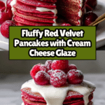 Keywords: Red Velvet Pancakes, Valentine’s Day Breakfast, Cream Cheese Glaze, Fluffy Pancakes, Cocoa Pancakes