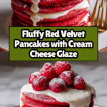 Delight your Valentine’s brunch with these fluffy, moist Red Velvet Pancakes topped with a creamy, sweet cream cheese glaze. Made with rich cocoa, vibrant red coloring, and classic buttermilk, these pancakes are a perfect blend of flavor and festive color that will impress your loved one.