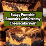 Keywords: pumpkin brownies, cheesecake swirl, fudgy brownies, pumpkin dessert, fall recipes, chocolate pumpkin brownies