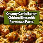 This Garlic Butter Chicken Bites with Creamy Parmesan Pasta is a delightful and comforting meal featuring tender chicken pieces bathed in a rich garlic butter sauce, paired perfectly with creamy parmesan-coated pasta. It’s a quick and easy dish that combines savory flavors with a luscious sauce, perfect for a satisfying weeknight dinner.