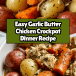 This Garlic Butter Chicken Crockpot recipe is a comforting, easy-to-make meal perfect for busy days. Tender chicken, baby red potatoes, and carrots are slow-cooked in a flavorful garlic butter sauce, resulting in a hearty, satisfying dish that requires minimal effort.