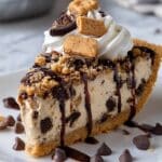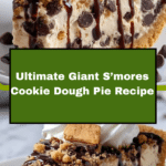 Keywords: Giant S’mores Cookie Dough Pie, s’mores dessert, chocolate chip cookie pie, marshmallow pie, gooey chocolate dessert, easy party dessert, campfire s’mores recipe indoors