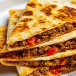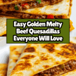 This Golden Melty Quesadillas recipe features a delicious ground beef and vegetable filling combined with melted cheddar cheese inside crispy, golden flour tortillas. Perfect for feeding a crowd, these quesadillas are pan-fried until perfectly crispy and served warm with your favorite dips like salsa, guacamole, or sour cream.