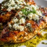 A flavorful Greek-inspired dish featuring tender, marinated chicken breasts baked with lemon juice, garlic, oregano, and topped with bubbly, slightly golden crumbled feta cheese. This easy oven-baked recipe is perfect for a healthy weeknight dinner, garnished with fresh parsley for a bright finish.