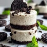 These Delicious Healthy No-Bake Oreo Cheesecake Bites are a guilt-free treat combining creamy fat-free cream cheese, non-fat vanilla Greek yogurt, and crushed Oreo Thins. Perfectly sweetened and balanced with a hint of vanilla and salt, these bite-sized desserts require no baking, making them quick and simple to prepare. Chilled in muffin tins, they offer a refreshing, creamy texture with a delightful Oreo crunch in every bite.