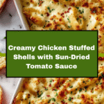Keywords: chicken stuffed shells, baked pasta, Italian chicken recipe, creamy sun-dried tomato sauce, ricotta chicken shells, Italian dinner recipe