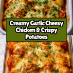 Keywords: Chicken, Creamy Chicken, Garlic Chicken, Cheesy Potatoes, High Protein, Main Dish