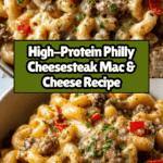 This High-Protein Creamy Philly Cheesesteak Mac & Cheese combines the rich flavors of a classic Philly cheesesteak with a creamy, cheesy macaroni base. Using lean ground beef and a blend of cheeses with sautéed peppers and onions, this dish offers a comforting yet protein-packed twist on traditional mac and cheese. Perfect for a hearty meal that satisfies cravings while maintaining balanced nutrition.
