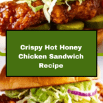 This Hot Honey Chicken Sandwich features crispy, golden-fried chicken breasts coated in panko breadcrumbs and smothered in a sweet and spicy hot honey sauce. Served on toasted brioche or potato buns with fresh lettuce and pickles, it’s a perfect balance of heat, sweetness, and crunch for a satisfying lunch or dinner.