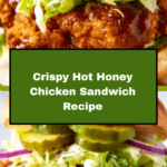 This Hot Honey Chicken Sandwich features crispy fried chicken breasts coated in crunchy panko breadcrumbs, generously seasoned and topped with a spicy-sweet hot honey sauce. Served on toasted brioche or potato buns with fresh lettuce and tangy pickles, this sandwich offers a perfect balance of heat, sweetness, and crunch for an irresistible lunch or dinner option.