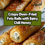 Crispy oven-fried feta rolls drizzled with a spicy chili honey glaze, combining creamy Mediterranean flavors with a sweet and spicy kick. This easy-to-make appetizer or snack features flaky phyllo pastry filled with herb-infused feta cheese, baked to golden perfection and finished with a warm chili honey drizzle, perfect for gatherings or a flavorful treat any time.