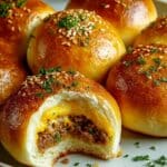 Irresistibly Cheesy Garlic Parmesan Cheeseburger Bombs are a savory, bite-sized delight perfect for any appetizer or snack. Juicy seasoned ground beef and melty cheddar cheese are wrapped in soft biscuit dough, brushed with garlic butter, and baked to golden perfection. Topped with Parmesan cheese and fresh parsley, these bombs deliver a perfect balance of cheesy, garlicky, and savory flavors in every bite.